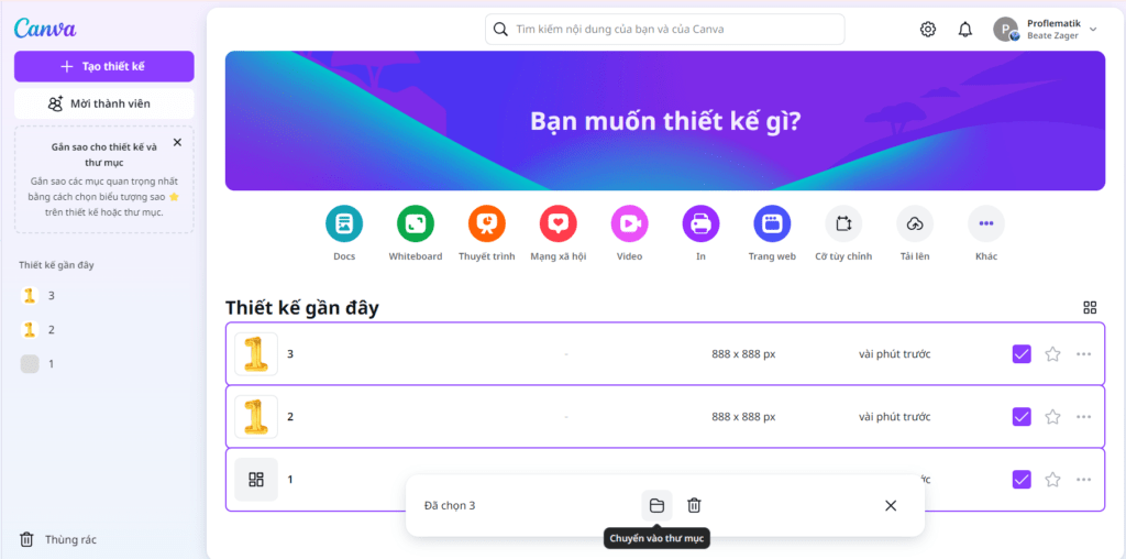 Bước 1: Truy cập trang chủ Canva Bước 2: Chọn các thiết kế cần di chuyển sau đó chuyển vào thư mục Bước 3: Chọn “+Tạo mới” Bước 4: Đặt tên cho thư mực và tiếp tục chọn “Chuyển sang thư mục mới” Bước 5: Vào phần Dự Án bên trái màn hình. Sau đó, chọn thư mục […]